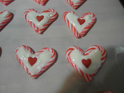Melted vanilla bark in a glass measuring cup in the microwave - 45 seconds at a time and poured it into the middle. I dotted it with a candy heart in the middle.