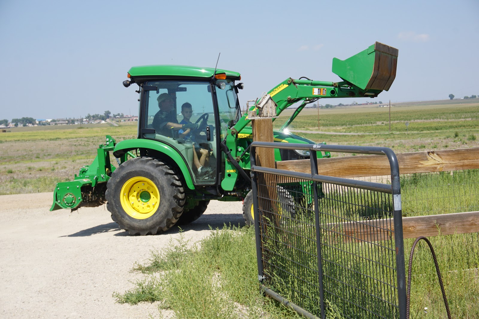 Our grandson learning the ropes... the tractor...