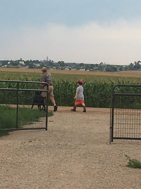 They walked over a mile. Papa taught him about corn and showed him inside the fields.