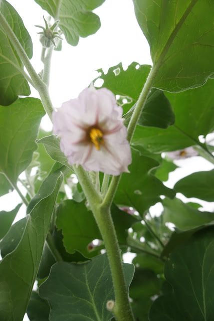 I heard something rustling behind me and saw Dude trimming the tomatoes. He can't just sit and rest. He didn't stay long but it was nice to have him with me. Besides I think all the green was good for him.